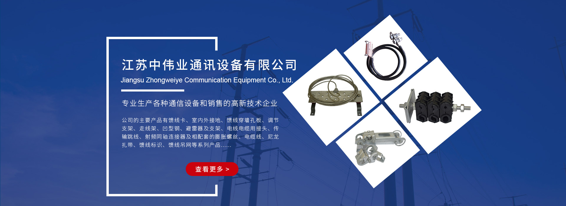 公司注重科技創(chuàng)新,經(jīng)過多年發(fā)展已經(jīng)蛻變成一個擁有自主知識產(chǎn)權的規(guī)模企業(yè)。自2005年起先后獲得江蘇省名優(yōu)企業(yè),江蘇省民營科技企業(yè)、江蘇省科技型中小型企業(yè)、南通市工程技術研究中心的稱號,并于2012年成功通過國家高新技術企業(yè)認定。公司與高校建立了長期的產(chǎn)學研合作關系,目前公司擁有發(fā)明專利19項,實用新型專利48項,高新技術產(chǎn)品6項。 公司的主要產(chǎn)品有饋線卡、低連漏纜卡、饋線穿墻孔板、調節(jié)直接、走線架、接地銅排、跳線和饋線同軸連接器等。產(chǎn)品市場占有率高,同時公司還不斷努力開拓國際市場,產(chǎn)品出口到香港、日本、歐洲等地......